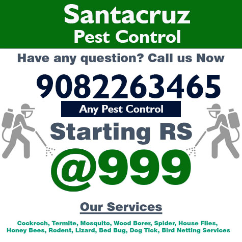 Santacruz Pest Control Mumbai No-1 Pest Control Company deals in all Kind of Pest Control Services from over 15 Year. Pest Control Service in Santacruz, using Latest & Non Toxic Chemicals to destroy Disease Creating Pests from your Home, Office, malls, Hotels, Hospitals, Warehouse, Farmhouse, Store Rooms etc at affordable cost & in friendly manner.